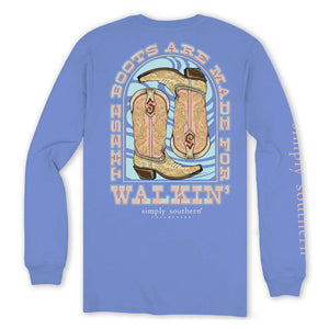 Step out in southern style with this Simply Southern long sleeve tee featuring a fun cowboy boot design on the back and the phrase “These Boots Are Made for Walkin’.” With sleeve logo detail and a soft, breathable feel, it’s perfect for casual days or layering through the seasons.