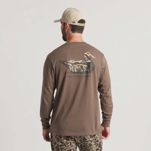 Bringing together a classic wooden decoy and our love for all things camo, the Vintage Duck Decoy Tee - Camo is perfect for the outdoorsman. Featuring a custom, camo pattern depicted on a classic duck decoy design, our comfortable, long sleeve tee has a handy front pocket and comes with a printed neck tag for added comfort.