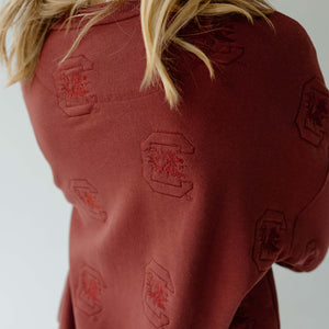 Show off your Gamecock pride in style with this University of South Carolina Maroon Embossed Logo Crewneck. Designed with an all-over tonal Gamecock logo pattern, this sweatshirt combines a sleek, elevated look with cozy comfort. Perfect for game day, tailgates, or casual wear, it’s a must-have for every Carolina fan.