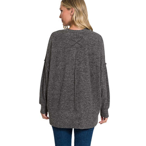 Stay effortlessly cozy in this Hacci Oversized Boxy Sweater by Zenana—designed with a relaxed, slouchy silhouette that drapes beautifully for everyday comfort. Made with soft hacci knit fabric, this lightweight sweater features dropped shoulders, an exposed center seam, and ribbed trim for a casual, lived-in look. Perfect for pairing with leggings or denim all season long.