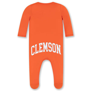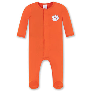 Keep your little Tiger cozy while showing school spirit with this Clemson infant magnetic footie. Featuring an easy magnetic closure, this bright orange one-piece is designed with the classic paw print logo on the chest and bold “CLEMSON” lettering across the back. Built-in footies and long sleeves make it a perfect gameday or everyday outfit for your future fan.