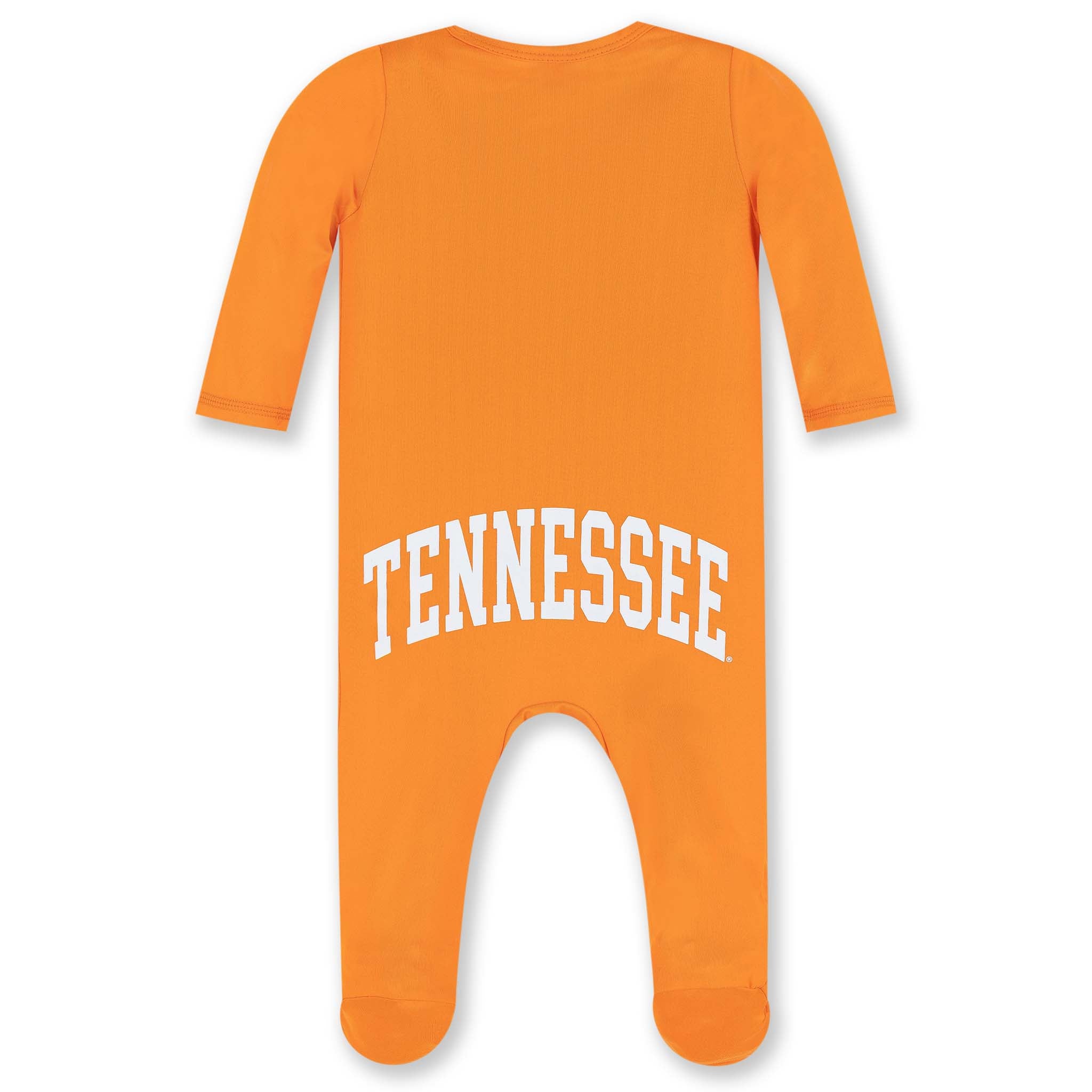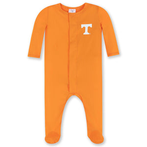 Dress your little Vols fan in comfort and team pride with this Tennessee infant magnetic footie. Made in signature Tennessee orange, this cozy one-piece features an easy magnetic closure, a bold white “T” logo on the chest, and “TENNESSEE” lettering across the back. With built-in footies and long sleeves, it’s a spirited gameday outfit or everyday favorite for the youngest Volunteers.