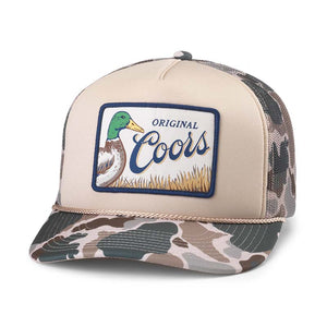 Washed Twill 5-panel with soft structured crown and slight curved visor. Braided nylon cord across seam and plastic snap closure. Front logo is merrowed twill patch or embroidery.