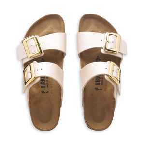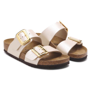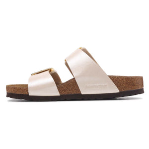 The BIRKENSTOCK Sydney proves that fashion and functionality can go hand in hand. With its two simple straps, it’s a real hit with women who want both high fashion and comfort. This sandal version has a silky sheen finish. The shiny, gently rounded padded buckles are especially eye-catching. The upper is made from the skin-friendly, hard-wearing synthetic material Birko-Flor®.