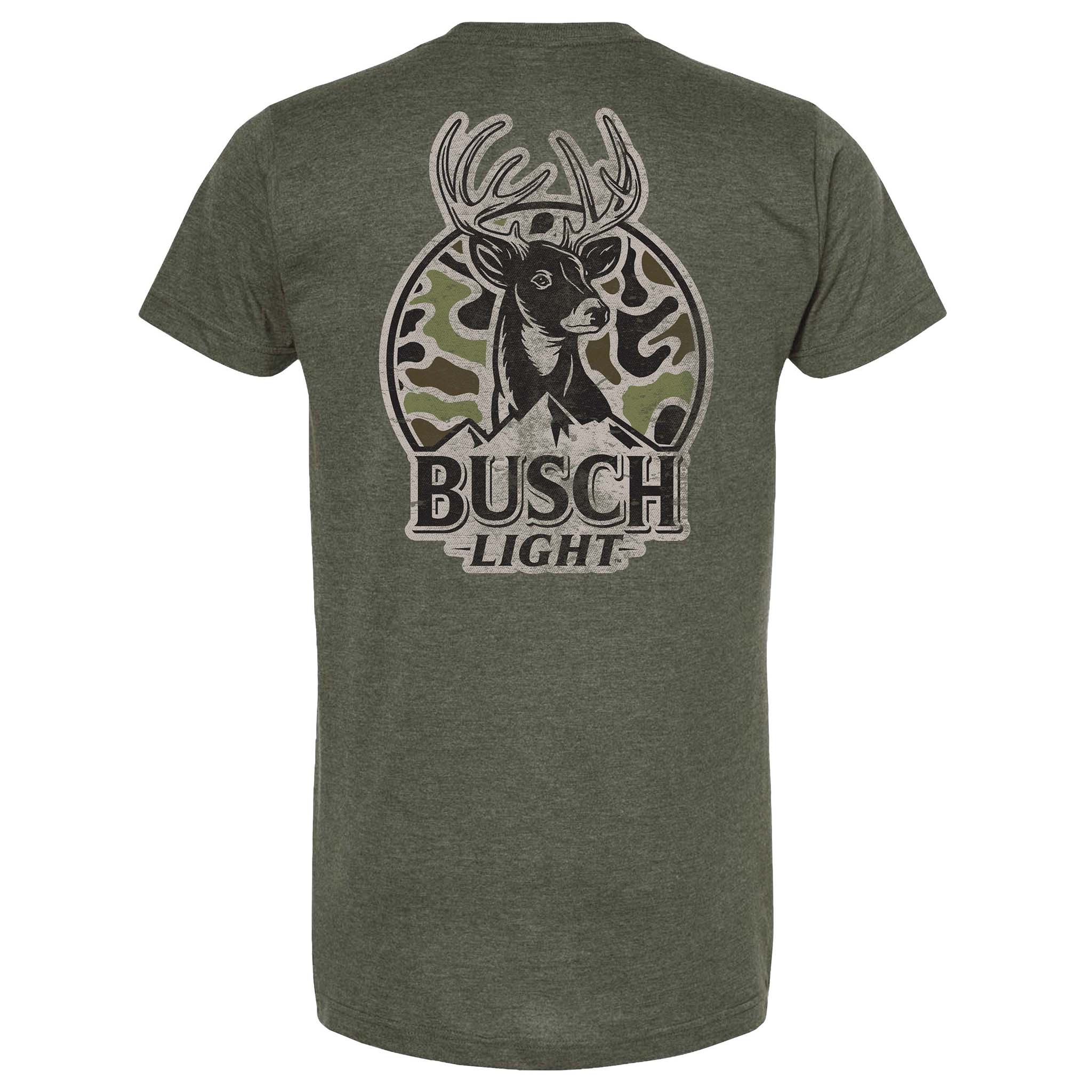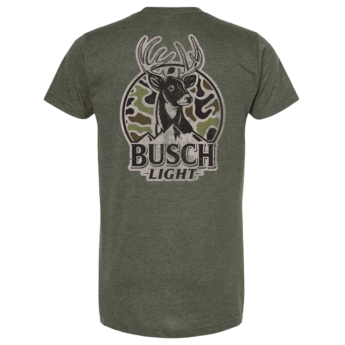 Blend in with nature while showing off your love for Busch beer with our camo deer t-shirt! Made with breathable short sleeves, this shirt is perfect for your outdoor adventures.