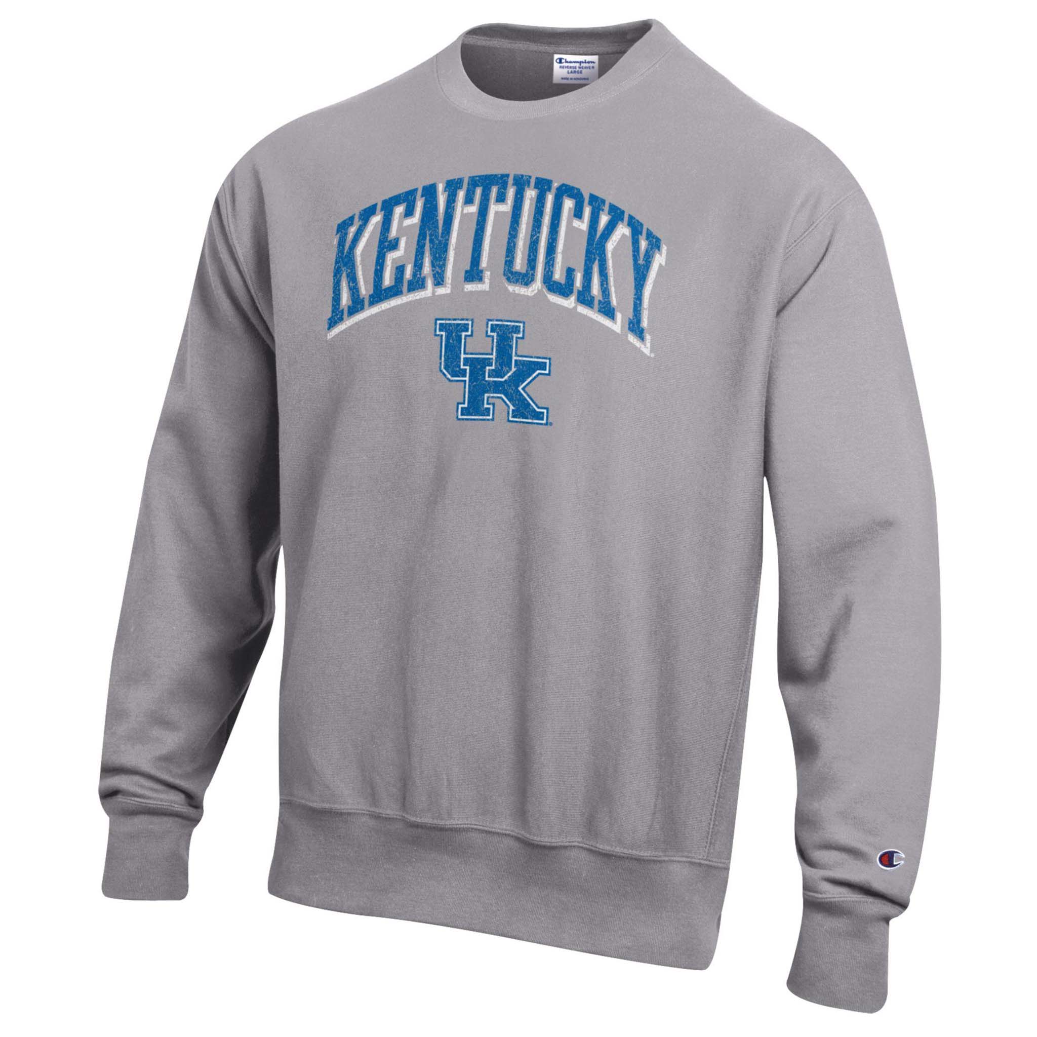 Show your team spirit with this classic Champion Kentucky Wildcats Crewneck Sweatshirt. Made from a soft cotton-blend fleece, it features a bold arched “Kentucky” graphic with the UK logo printed across the chest. The ribbed collar, cuffs, and hem offer a comfortable fit that keeps its shape wear after wear. Perfect for game days, tailgates, or casual weekends, this officially licensed sweatshirt combines everyday comfort with timeless collegiate style.