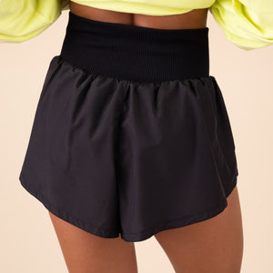 Seize the run in these so-flattering shorts, featuring a durable, water-resistant fabrication, built-in briefs and a knit high-rise waistband