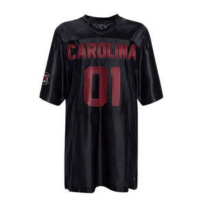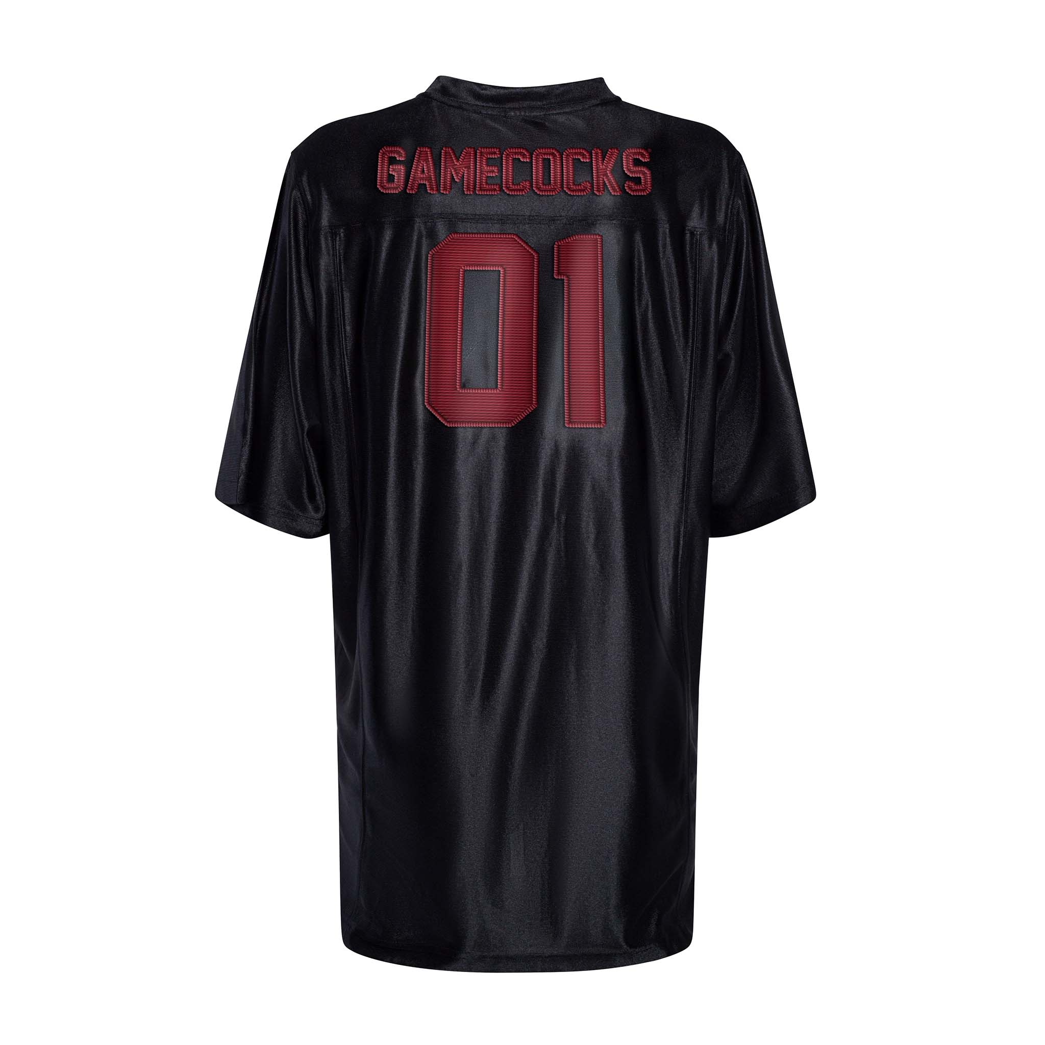Cheer on the Gamecocks in classic style with this University of South Carolina unisex black jersey. Featuring bold red “CAROLINA” lettering and #01 on the front with matching back details, this jersey brings true gameday energy. Embroidered Gamecock logo accents the sleeve for added team pride. Designed in a relaxed fit, it’s perfect for men and women to show their school spirit all season long.