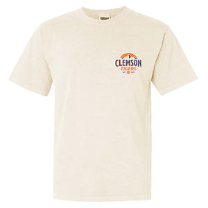 Short sleeve ivory t-shirt with front and back Clemson Tigers graphics
