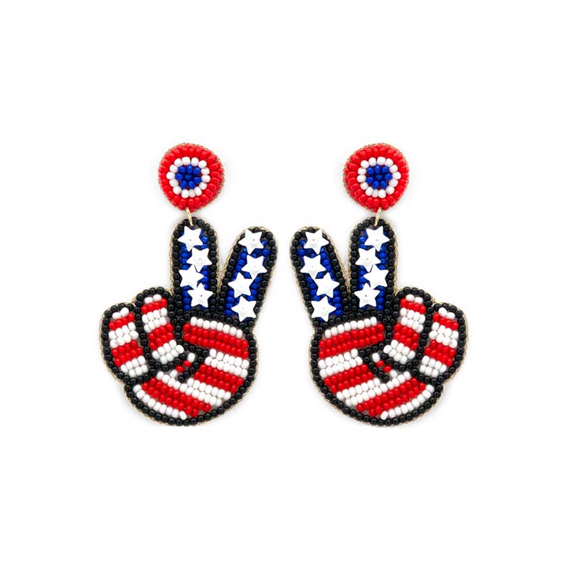Look sharp and show your pride in the Peace Sign American Flag Beaded Earrings!