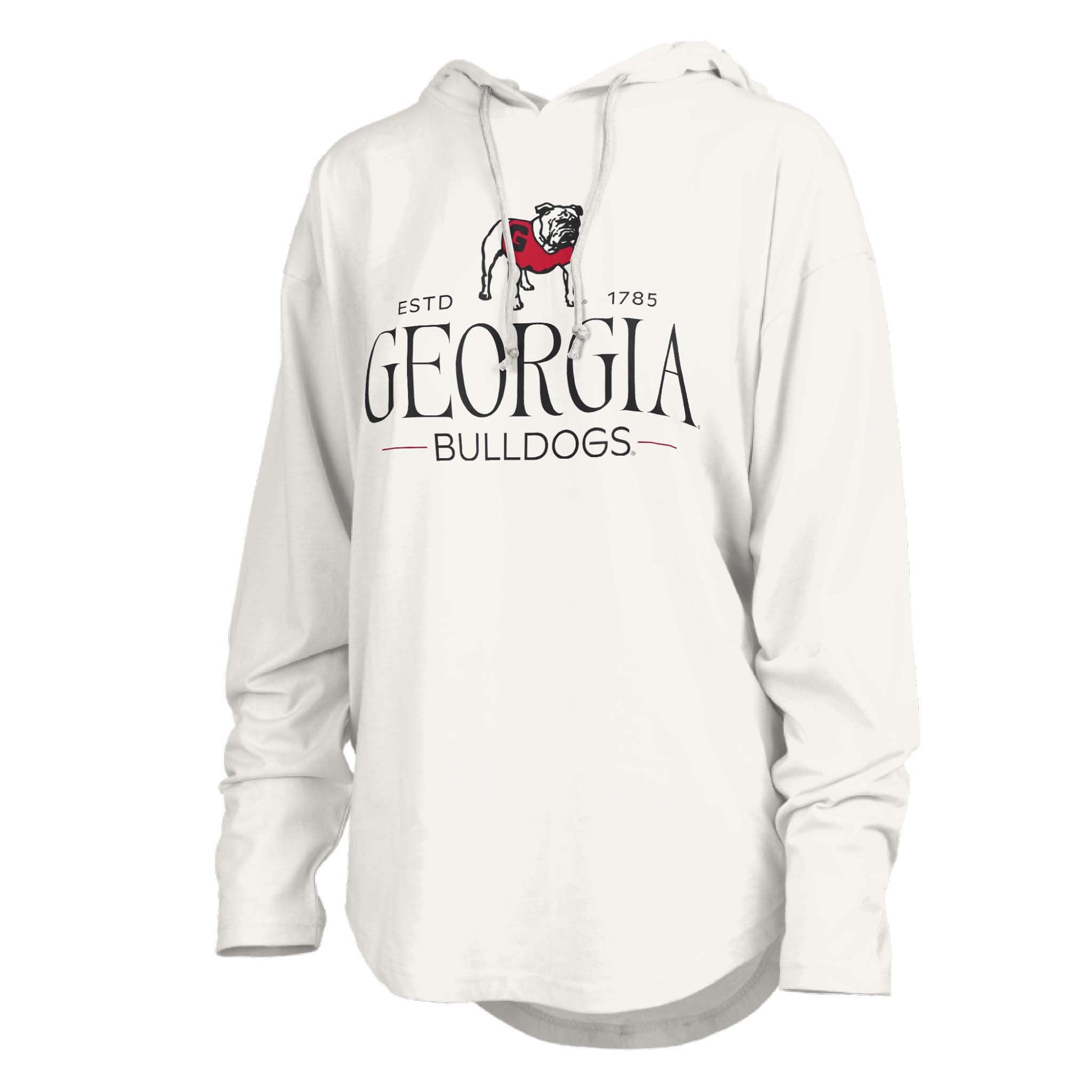 Cheer on the Dawgs in comfort with this Georgia Bulldogs hooded long sleeve tee. Featuring the classic Bulldog mascot and bold “Georgia Bulldogs” lettering, this lightweight hoodie blends game day spirit with everyday wearability. Perfect for layering, it’s a versatile pick for cooler weather and year-round pride.
