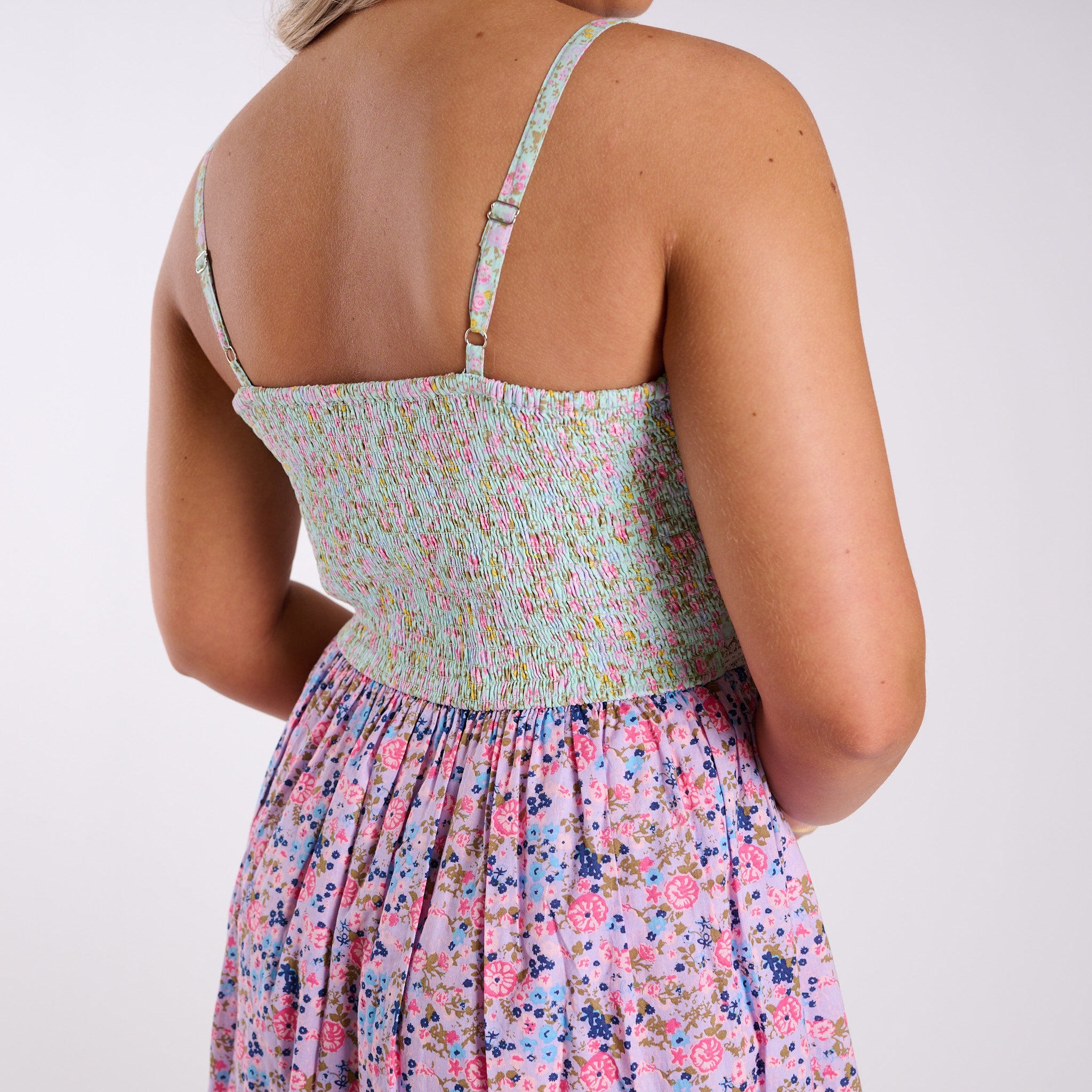 Feminine, flowy, and full of charm—the Simply Southern Multi Floral Sleeveless Maxi Dress is made for sunny days and effortless styling. Designed with a tiered silhouette and mixed floral prints, this maxi dress creates a soft, romantic look that moves beautifully with every step. The smocked bodice offers a comfortable, flattering fit, while adjustable straps ensure the perfect feel.
