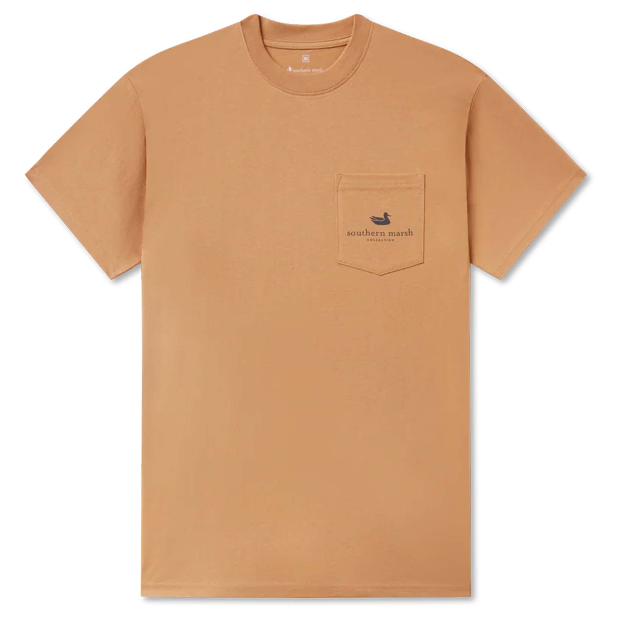 Inspired by the artistry of traditional firearms, the Heritage Engraved short sleeve tee showcases a finely detailed, vintage duck design showcased in an oval medallion. Southern Marsh's comfortable cotton tees have a handy front pocket and come with a printed neck tag for added comfort.