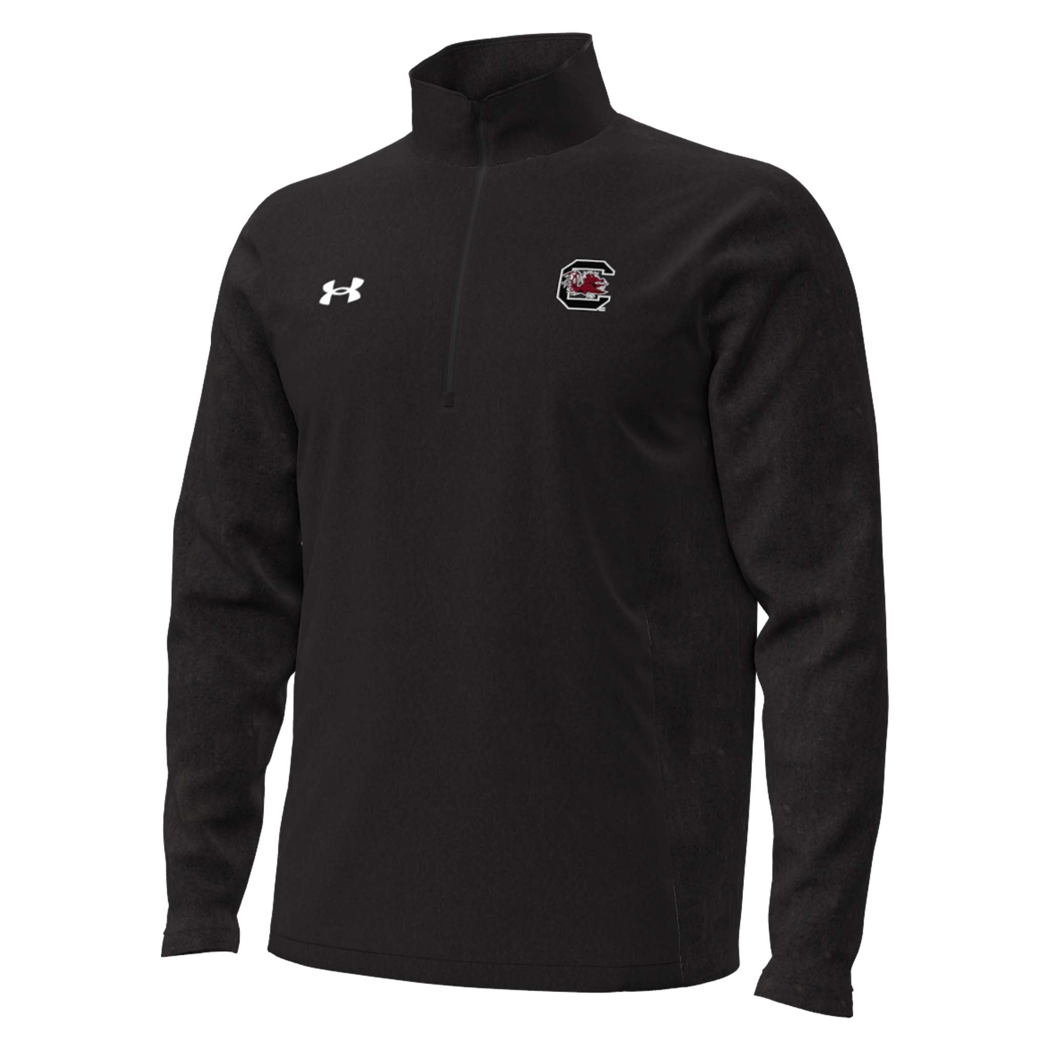 Stay warm while showing your Gamecock spirit with this Under Armour quarter-zip pullover. Featuring a sleek black design, it’s accented with the University of South Carolina logo on the chest and the Under Armour logo on the opposite side. Built with lightweight, breathable fabric, this versatile pullover is perfect for workouts, tailgates, or everyday wear.