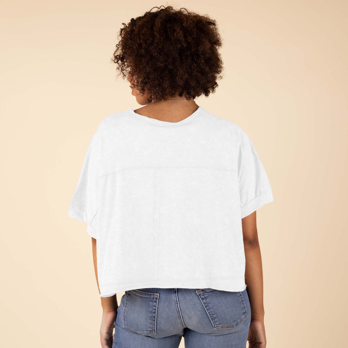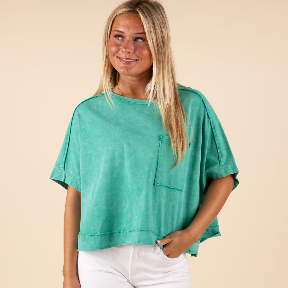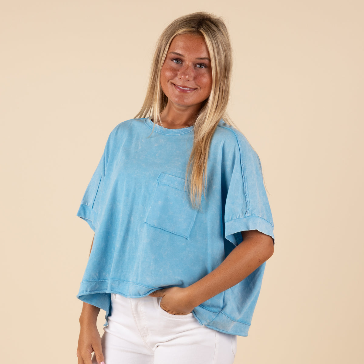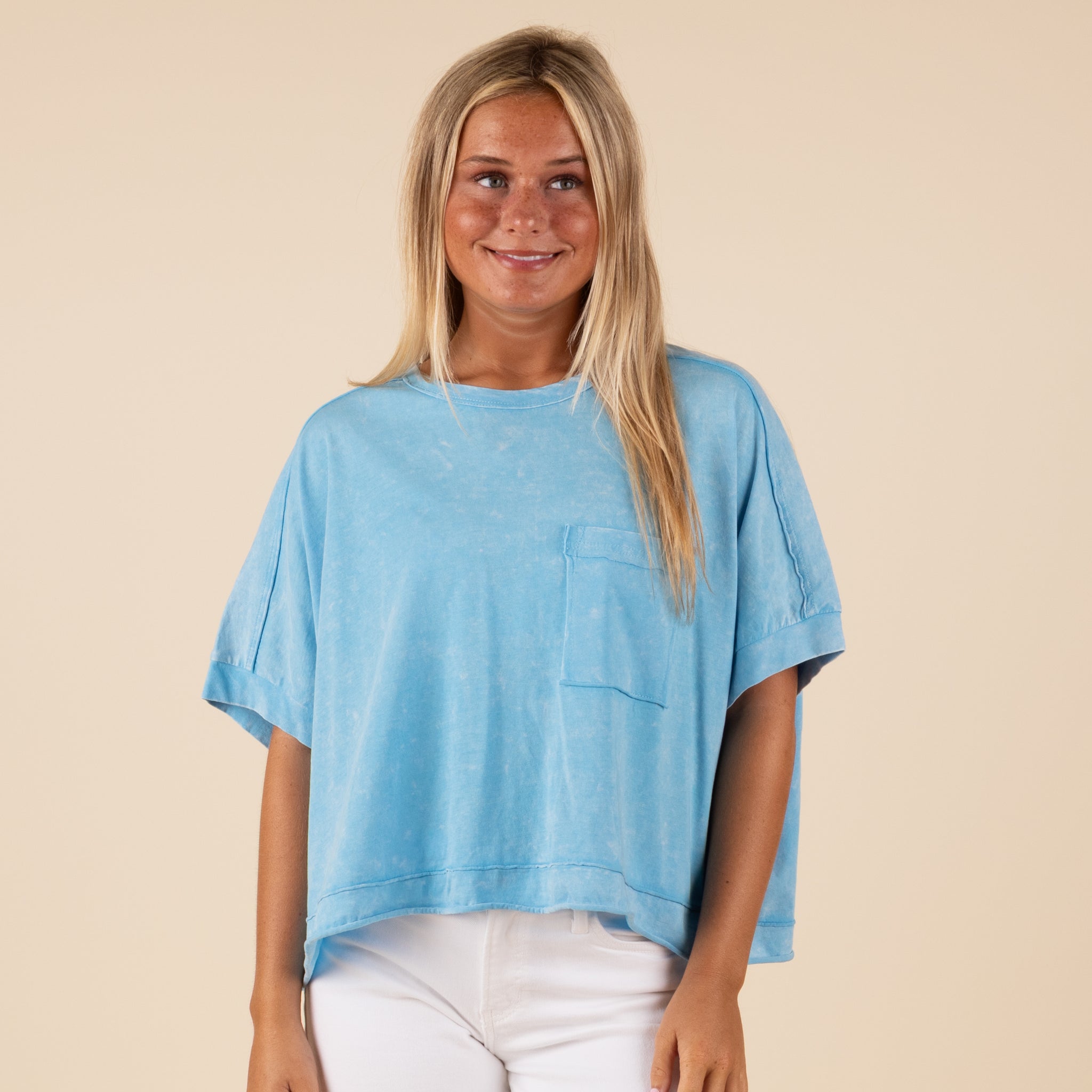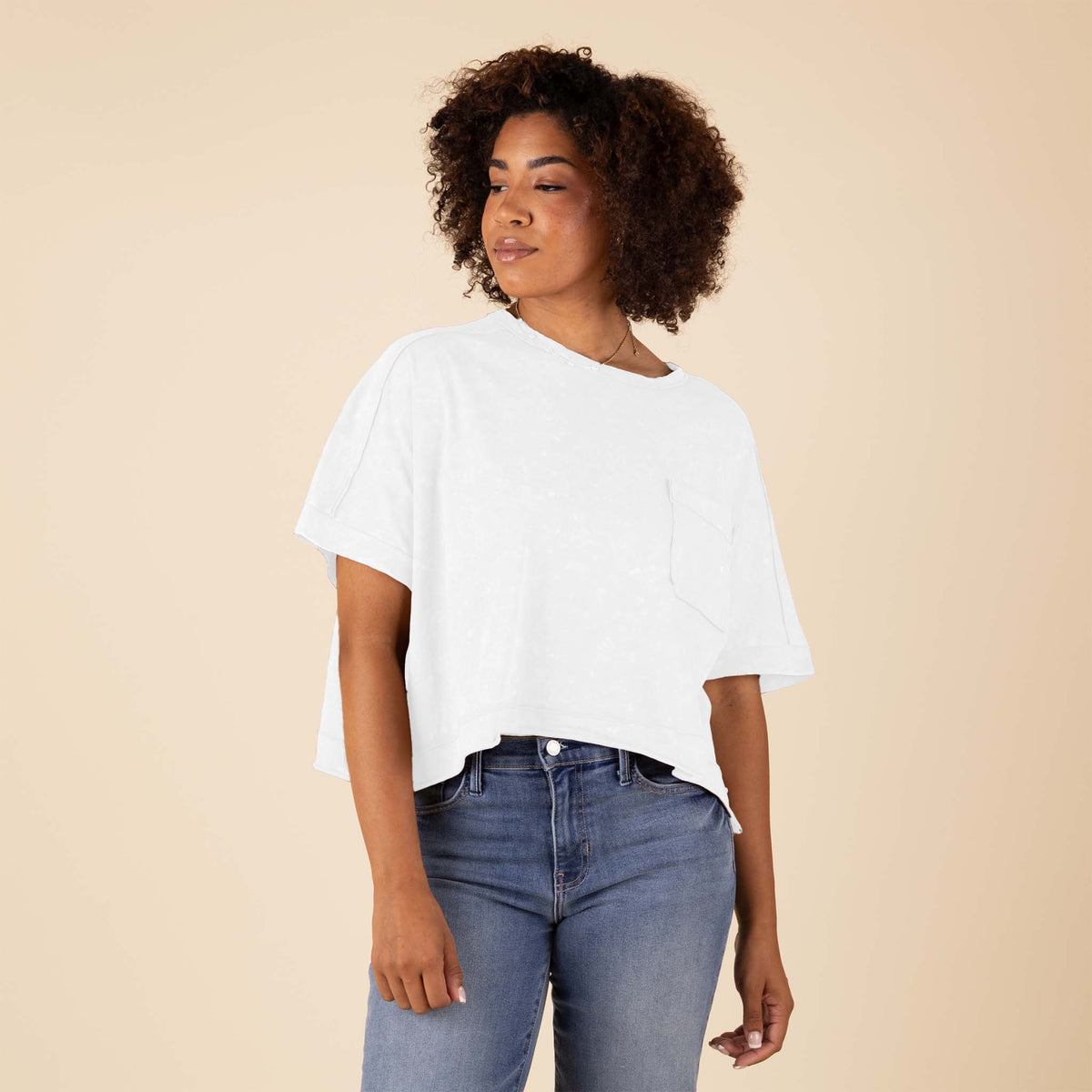 Refresh your everyday wardrobe with this Boxy Pocket Short Sleeve Tee by Very J. Designed with a relaxed, boxy fit and garment-washed finish, this tee features dropped shoulders, wide sleeves, and a single chest pocket for added detail. Lightweight and breathable—perfect for effortless casual style.