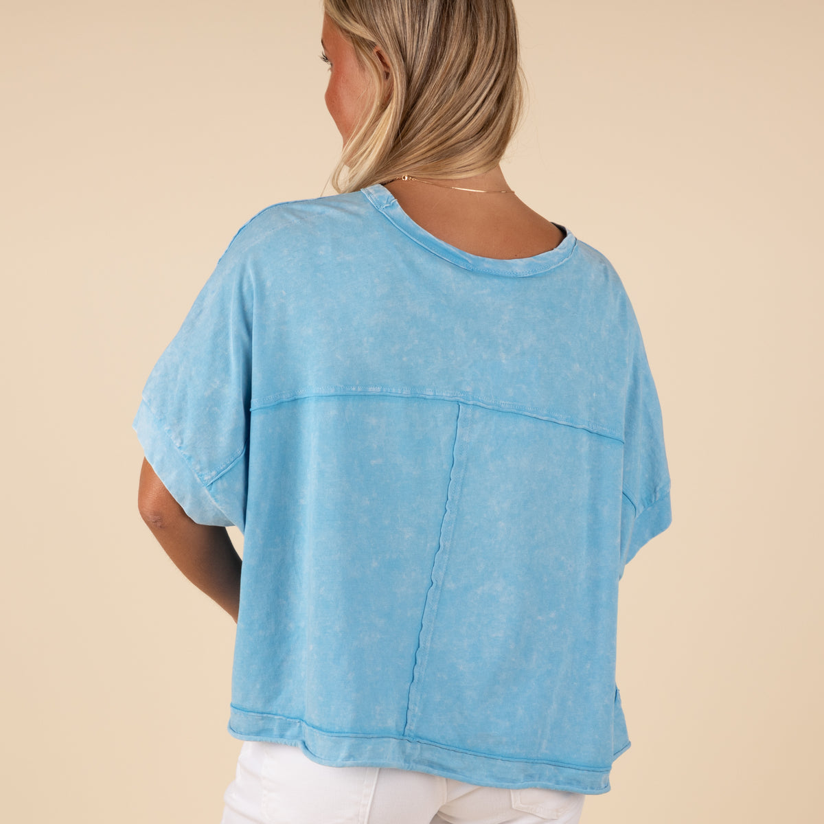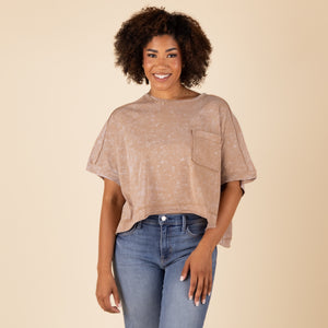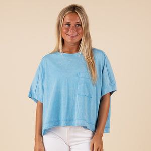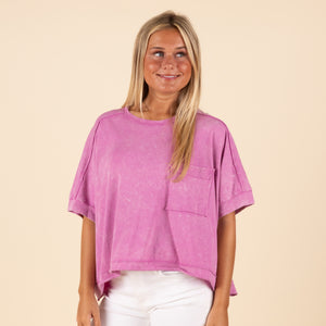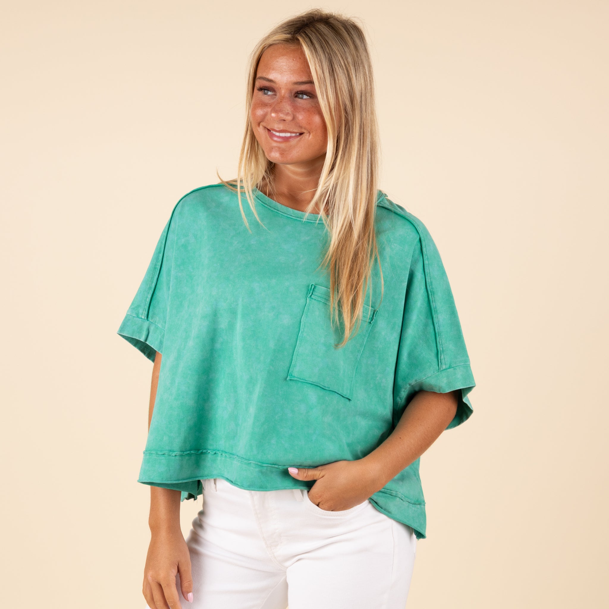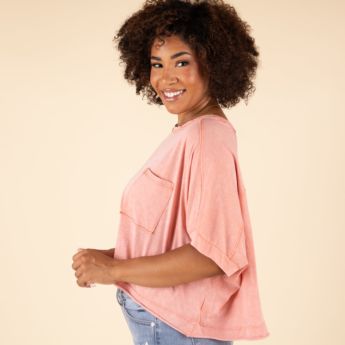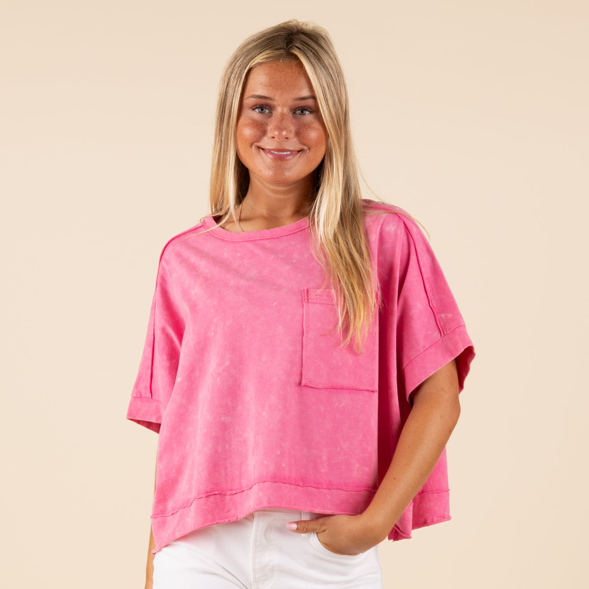 Refresh your everyday wardrobe with this Boxy Pocket Short Sleeve Tee by Very J. Designed with a relaxed, boxy fit and garment-washed finish, this tee features dropped shoulders, wide sleeves, and a single chest pocket for added detail. Lightweight and breathable—perfect for effortless casual style.