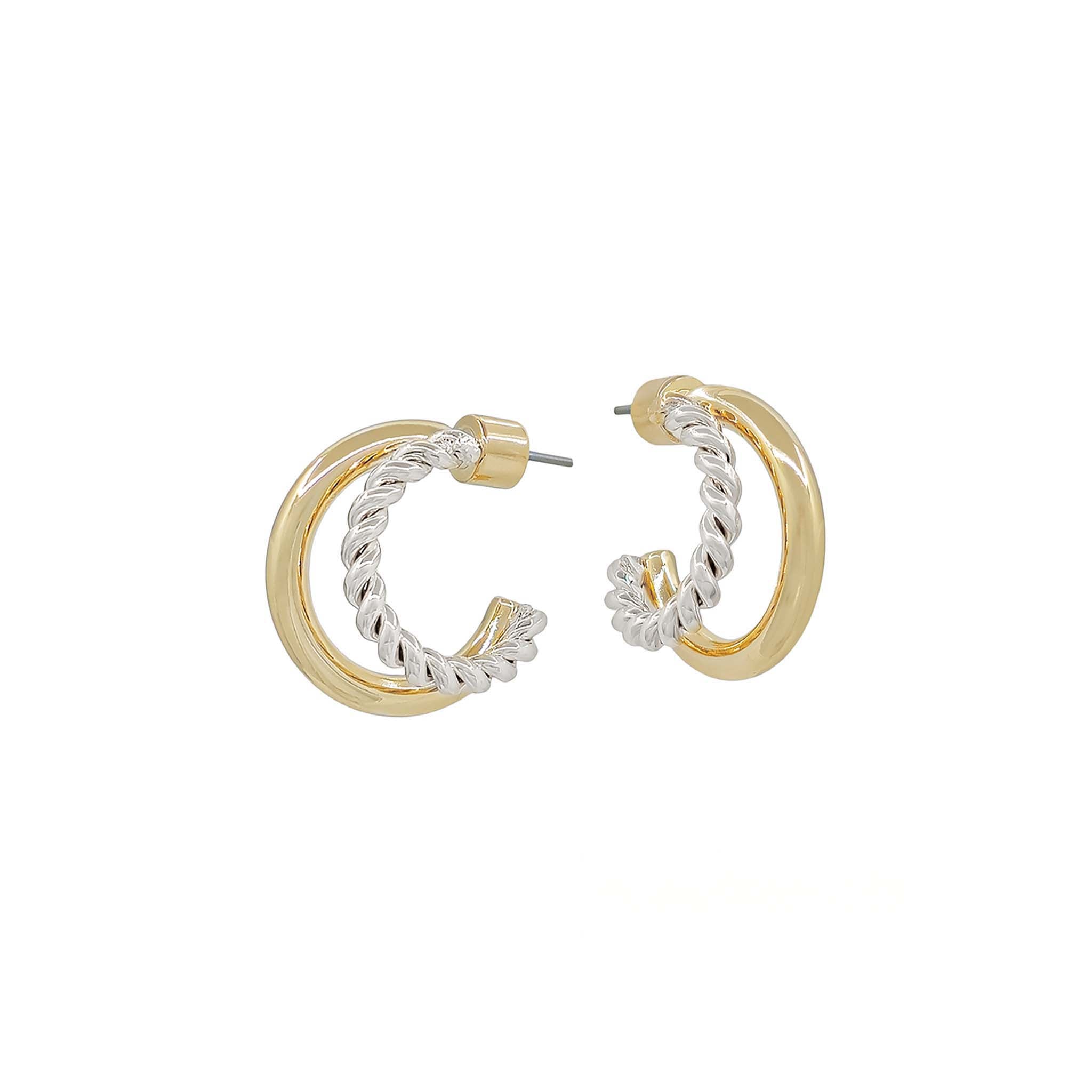 Two-tone styling gets an update with these chunky gold hoops wrapped in a silver rope detail.