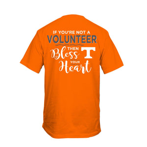 Your young fan will love showing off their Tennessee pride in this bright Volunteers tee. Made with soft, breathable cotton, this youth t-shirt is perfect for game days, school, or everyday wear. The front features a simple Tennessee Volunteers heart graphic, while the back highlights a bold design with the phrase, “If you’re not a Volunteer then bless your heart” and the iconic Power T logo. A fun and spirited style for every young Vols supporter!