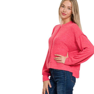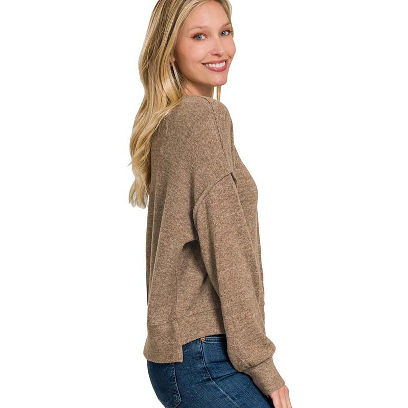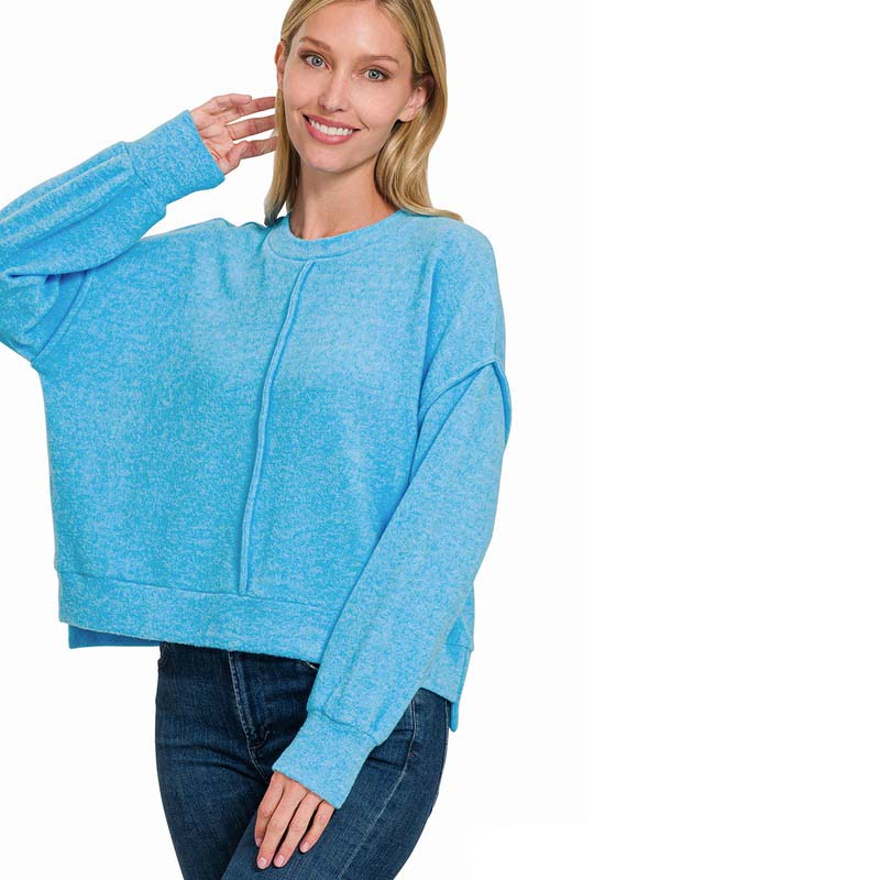 Brushed melange hacci hi-low hem sweater
